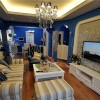 整个房间的装修以蓝色为主要的装修色调,电视背景墙采用了大面积的海洋蓝色进行装饰,彰显出更多的憨厚和干净的氛围,加上周围的白色的门套线以及白色的简约风格的家具给人的清爽感觉更加的丰富,客厅低啊面采用的是实木的地板装饰给人一种回归自然的感觉,白色的石膏板顶面造型配合灯光的装饰让客厅的温馨浪漫气氛更加的浓郁。