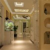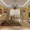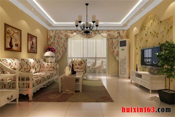 欧美风格的装修一般给人一种回归自然舒适简朴的感觉,客厅的整体装饰是非常清新和舒适的,整体的印花装饰让整个客厅的温馨浪漫感倍增,白色的石膏板吊顶装饰加上一个大型的吊灯的使用让客厅的延伸和明亮感骤升,整体的印花家具的使用和印花的窗帘装饰起到相互衬托的作用,电视背景墙的设计采用了嵌入式的装饰铺设上绿色的印花墙面装饰为空间的清新气氛带来更多的展示,沙发背景墙上两幅欧式的装饰画的存在把装修风格的特点展示得淋漓尽致。