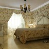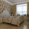 卧室的装饰也是离不开印花设计理念的,墙面的铺设采用的是印花的墙纸铺设,地面采用的是实木地板的装饰让空间的舒适感倍增,欧式的整体家具的运用更加的突出一致性的装修风格,把欧美的装修特点展现得更加的完善。