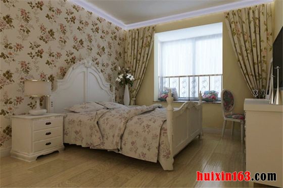 卧室的装饰也是离不开印花设计理念的,墙面的铺设采用的是印花的墙纸铺设,地面采用的是实木地板的装饰让空间的舒适感倍增,欧式的整体家具的运用更加的突出一致性的装修风格,把欧美的装修特点展现得更加的完善。
