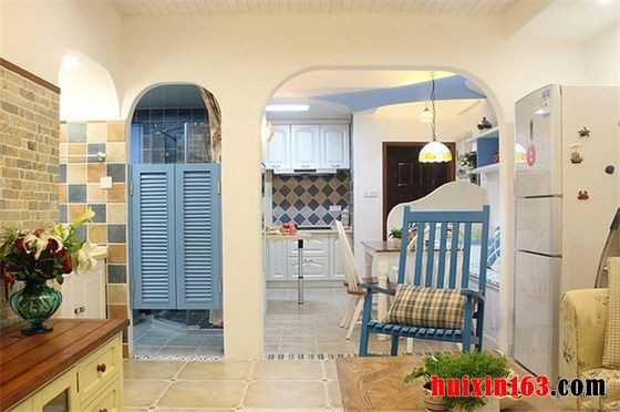 田园风格的装饰属于一种大众装修风格,其主旨是通过装饰装修表现出田园的气息。不过这里的田园并非农村的田园,而是一种贴近自然,向往自然的风格。这套住宅的客厅装饰比较随意和温馨,白色印花的整体沙发的使用让空间温馨感更加的突出,蓝色和白色的家具装饰为空间的一抹清新和浪漫带来更好的展示,顶面装饰采用一个大型的水晶吊灯的使用不仅加深了空间的奢华大气装饰,还能够把装修风格的制定更加的强调巩固。